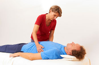 Auf der Liege bewegt der/die Atempädagogin durch sanfte Berührung, Zug und Dehnung oder sanften Druck - es ist ein Körperdialog, auf den sich der Klient mit seinem Atem und Körper einlässt. Ich begleite und unterstütze dabei, je nach individuellen Bedürfnissen mithilfe verschiedener Bewegungsangebote verengte Atemräume wieder zu weiten, dezentrierte Körperbereiche wieder zu Kompaktheit und einem Zentrum zu führen und festgehaltenes Muskelgewebe elastisch und Gelenke wieder durchlässig zu machen und Ihren Atem wieder in einen natürlichen Fluß zu bringen.